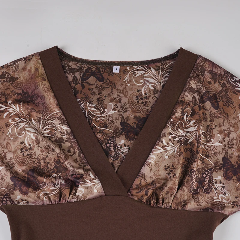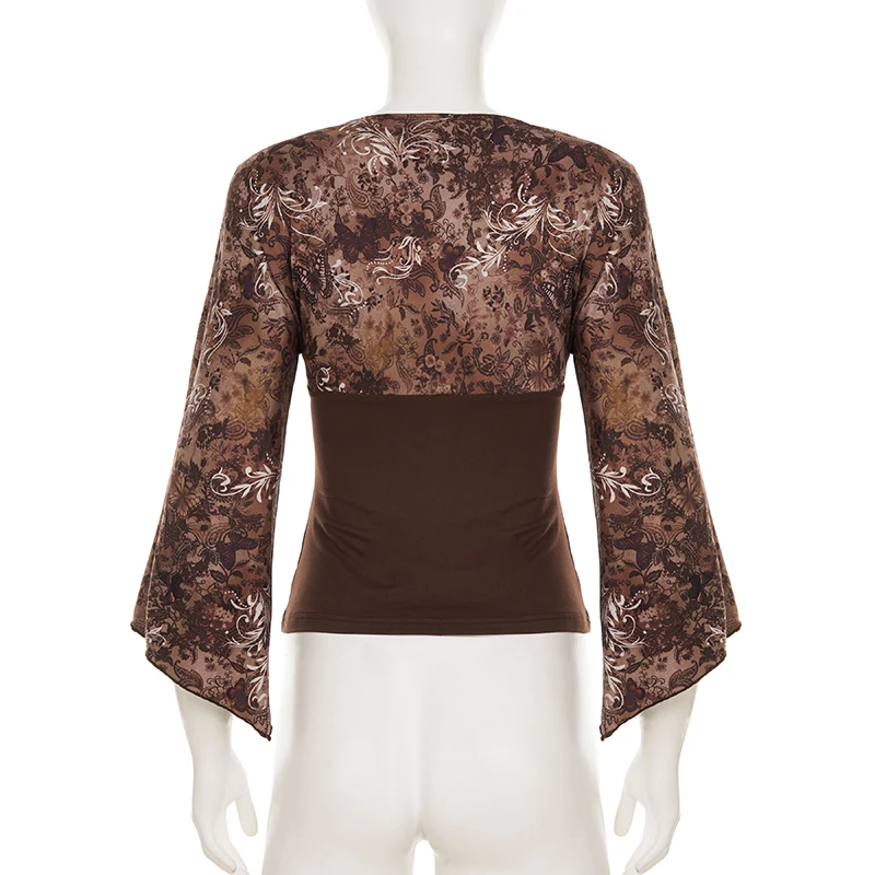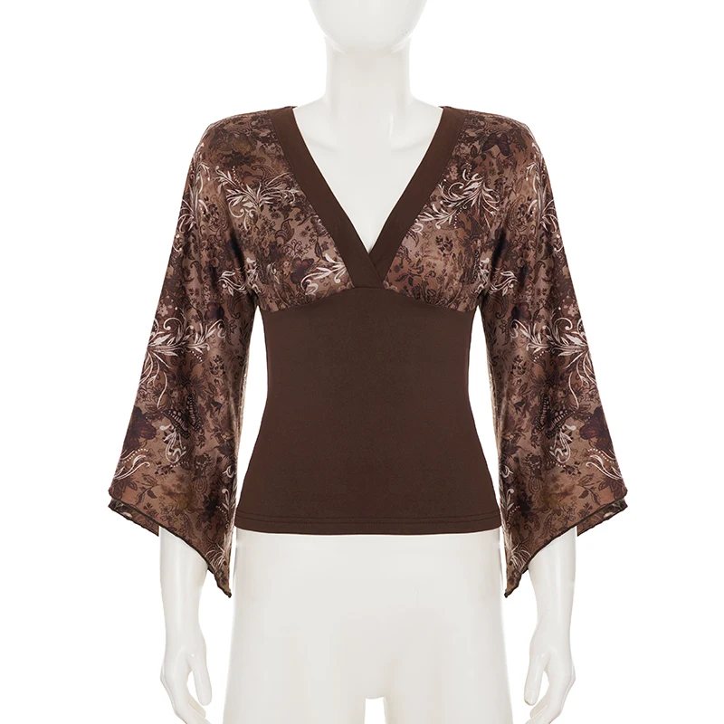 V-neck Patchwork Print 2000s Inspired Shirt